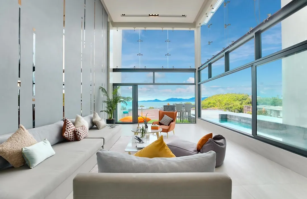 Die 5-Zimmer- Luxury Sunset House,Home Gym,Cinema Room,Rooftop Ko Samui liegt 13 Gehminuten vom Fischerdorf entfernt und bietet Gästen eine Terrasse.